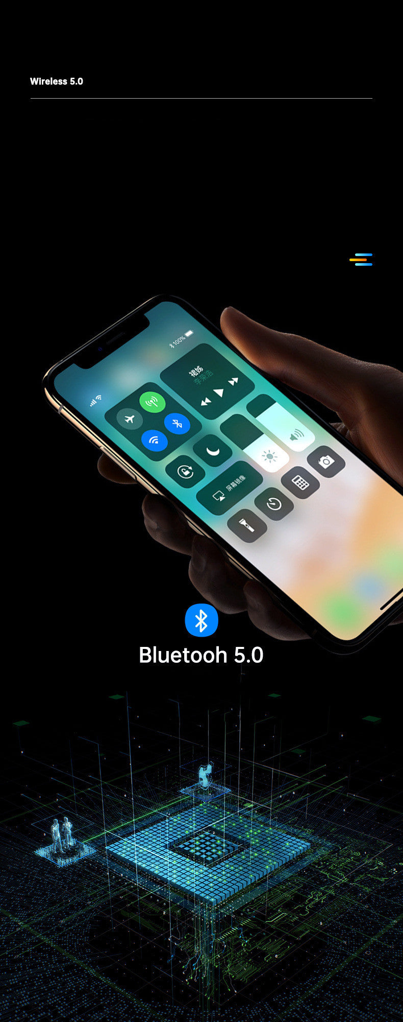 8. Upgraded version 5.0 Bluetooth chip, the connection is more stable, and the automatic connection is faster.