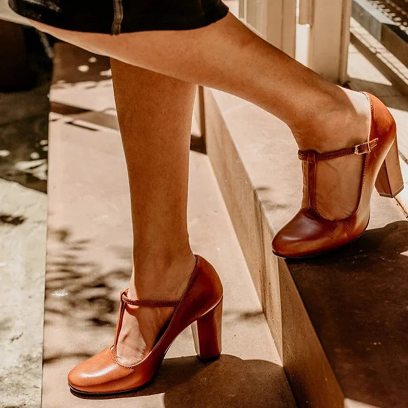 High Heel 40-43 Plus Size T-shaped Buckle With Shallow Mouth Pumps